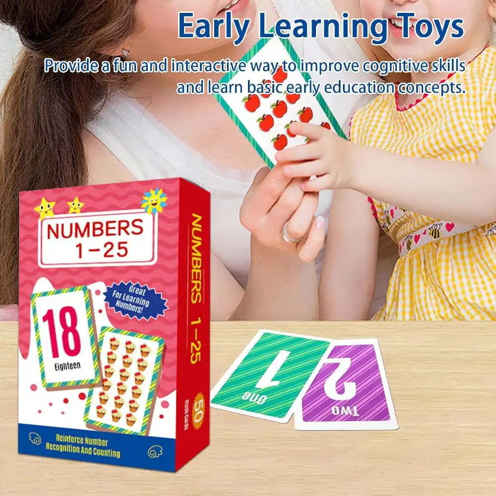 Counting numbers flash cards for early math learning is a must have for new parents. Designed to help young kids in learning counting skills and math in general. Features a pack of cards form 1-25 that helps young ones to master the numbers at just an early age.